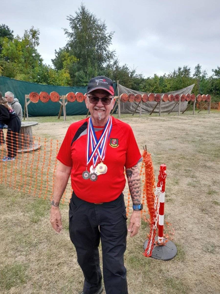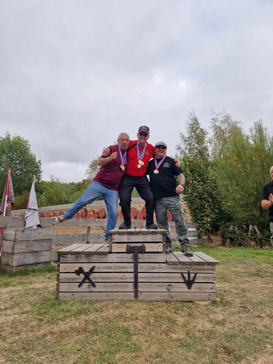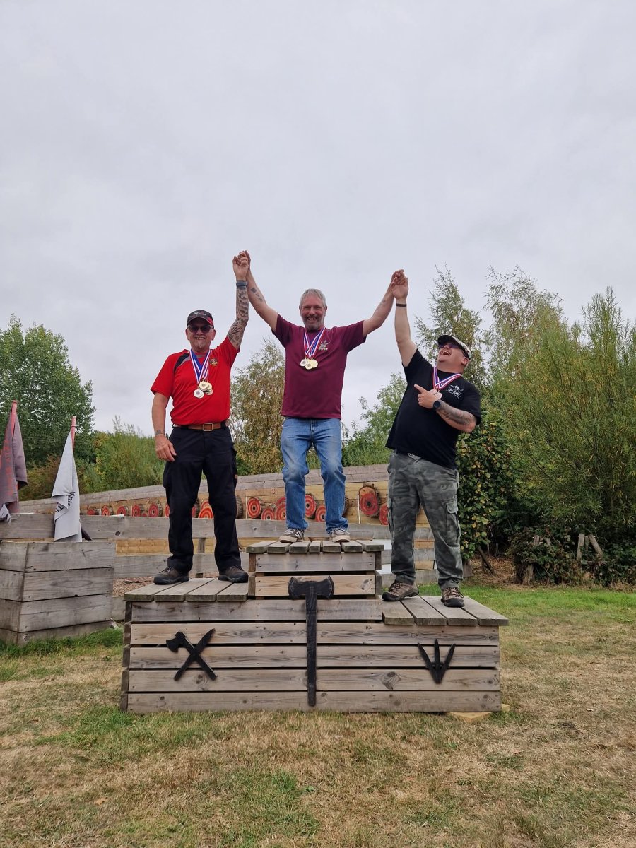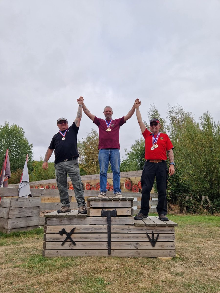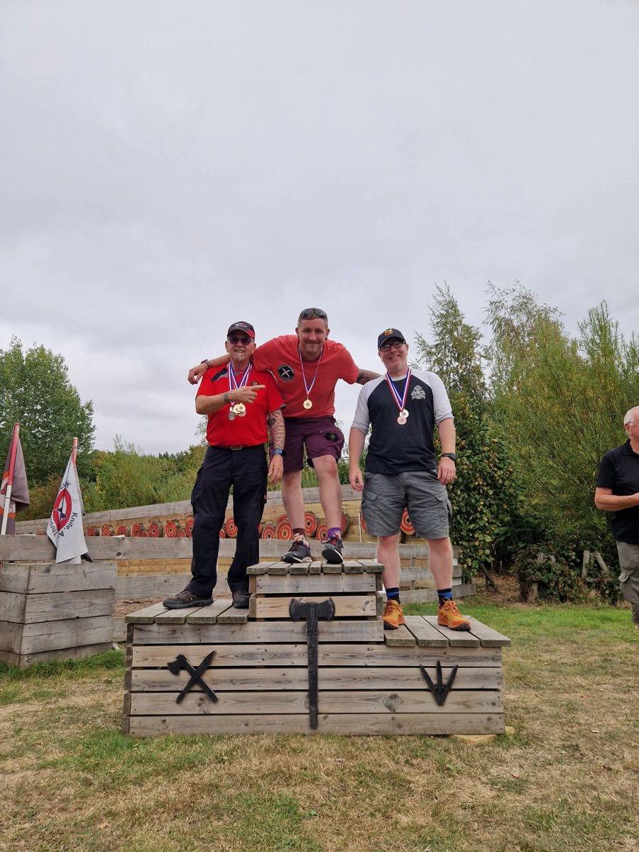 1st Place Walkback Axe / 1st Place Snife |/1st Place Long Distance Axe / 1st Place Overall Precision / 3rd Place Silhouette / 3rd Place Walkback Knife / Overall winner and UK Champion 2022