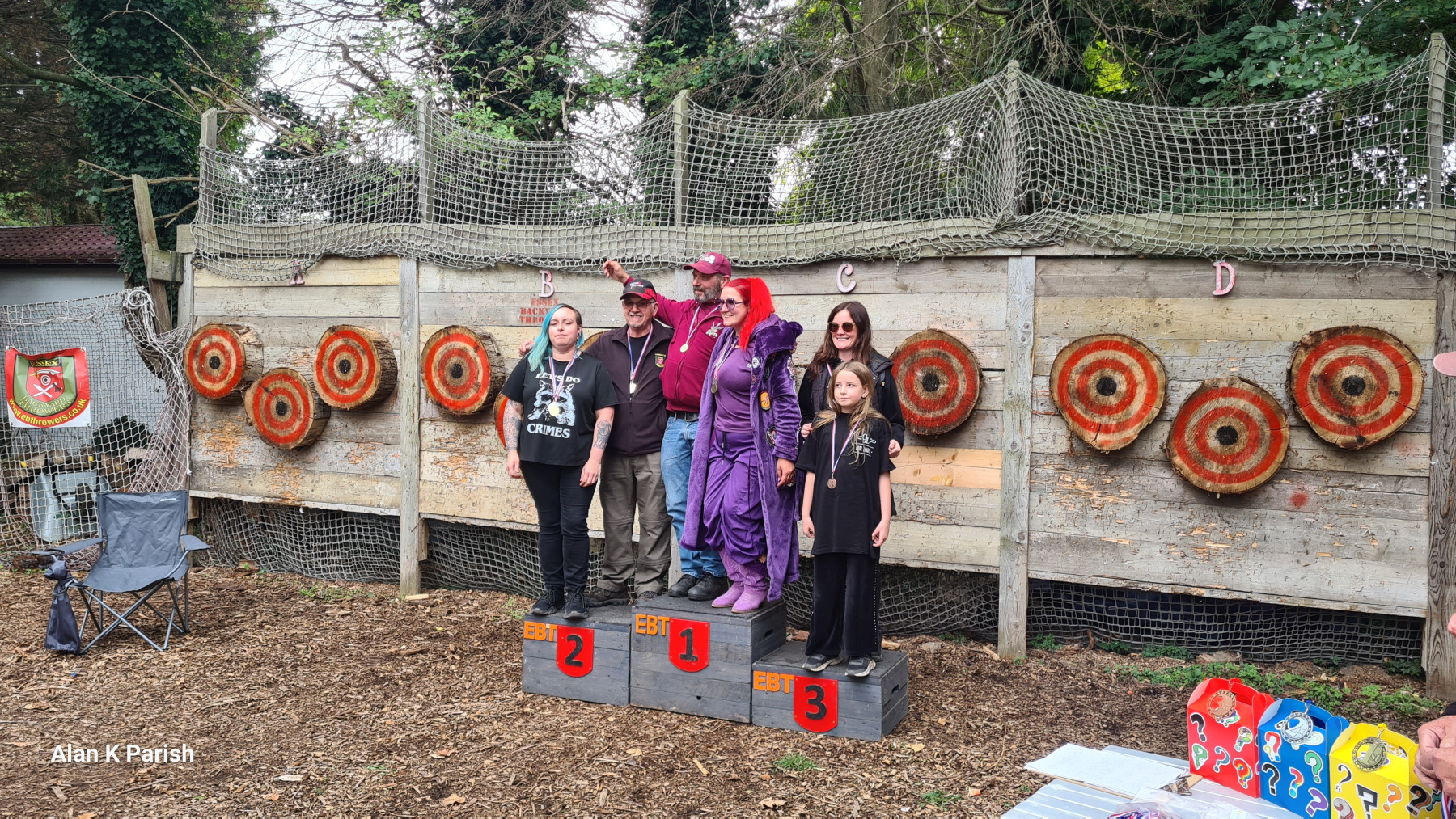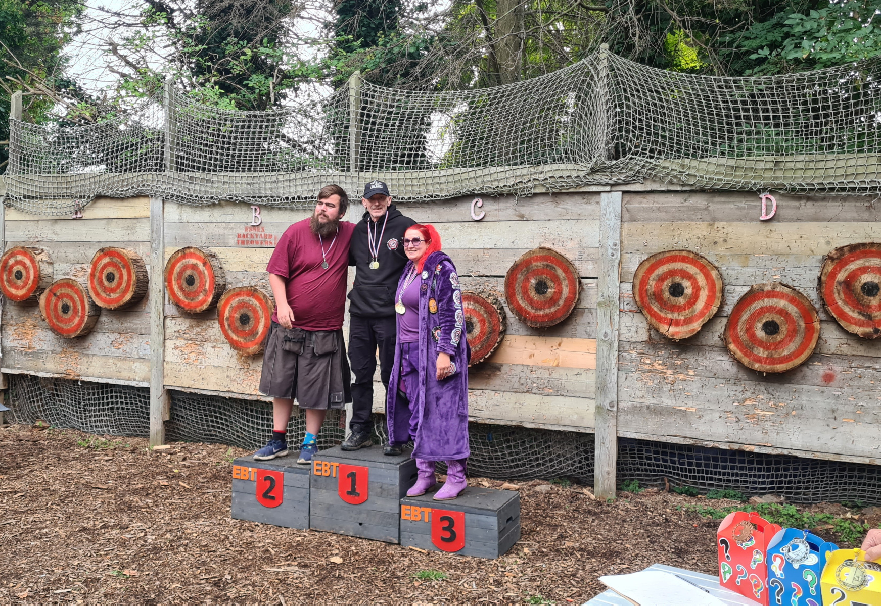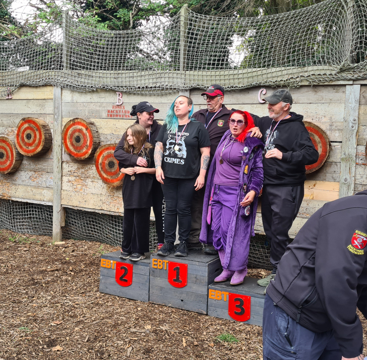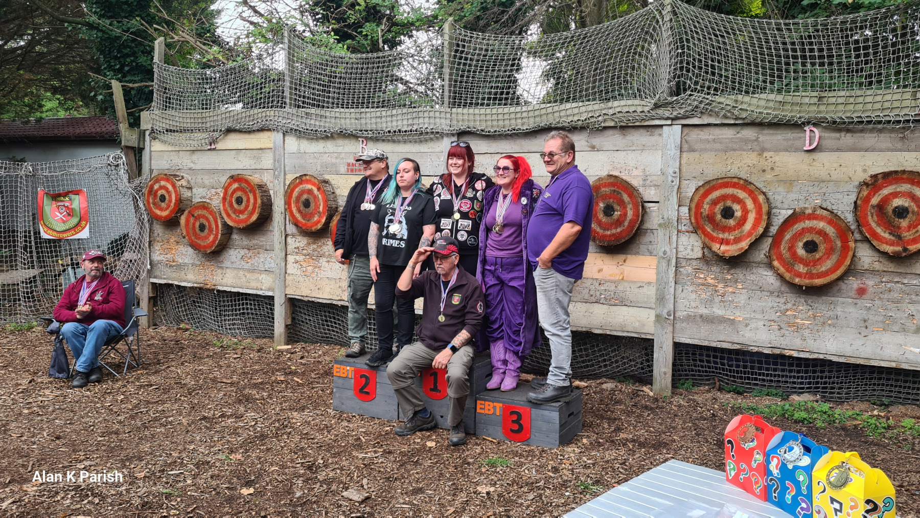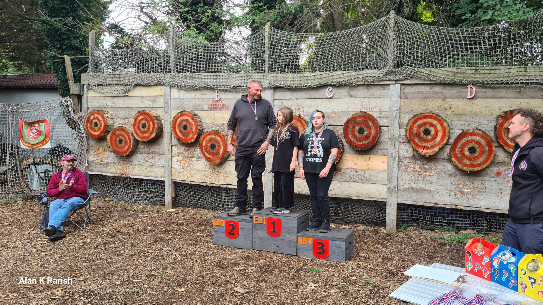 1st Place Walkback Axe / 1st Place Snife |/1st Place Long Distance Axe / 1st Place Overall Precision / 3rd Place Silhouette / 3rd Place Walkback Knife / Overall winner and UK Champion 2022