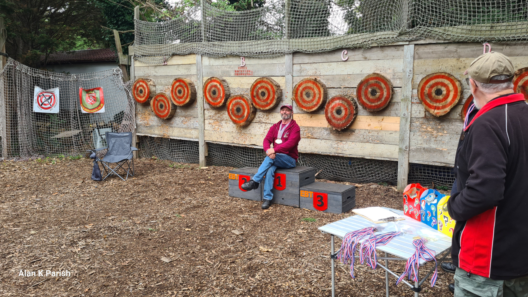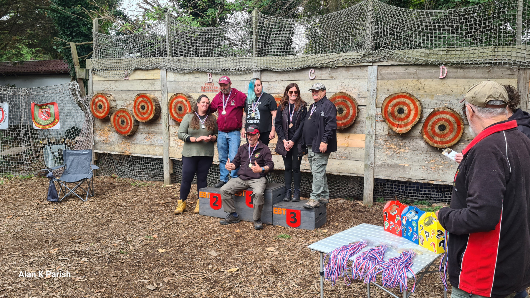 Below the pictures are from the 2023 Norfolk Flingers Chuck in the Muck. Alan’s achievements are as follows. 1st place Snife / 2nd place Silhouette / 3rd place long distance knife / 1st place Walkback Knife / 2nd place Spinner / 1st place Walkback Axe / Overall Knife and Axe Champion 2023