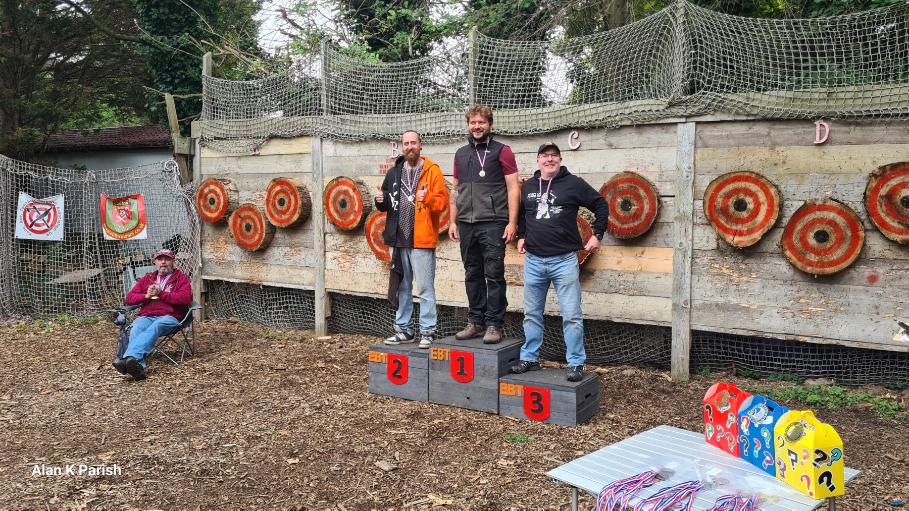 1st place Silhouaxe / 2nd place Mountain Man / 1st Place Overall Knife and Axe Champion / 2nd place Walkback Axe / 2nd place Walkback Knife / 3rd place Long Distance Knife / Overall winner and UK Champion 2023.