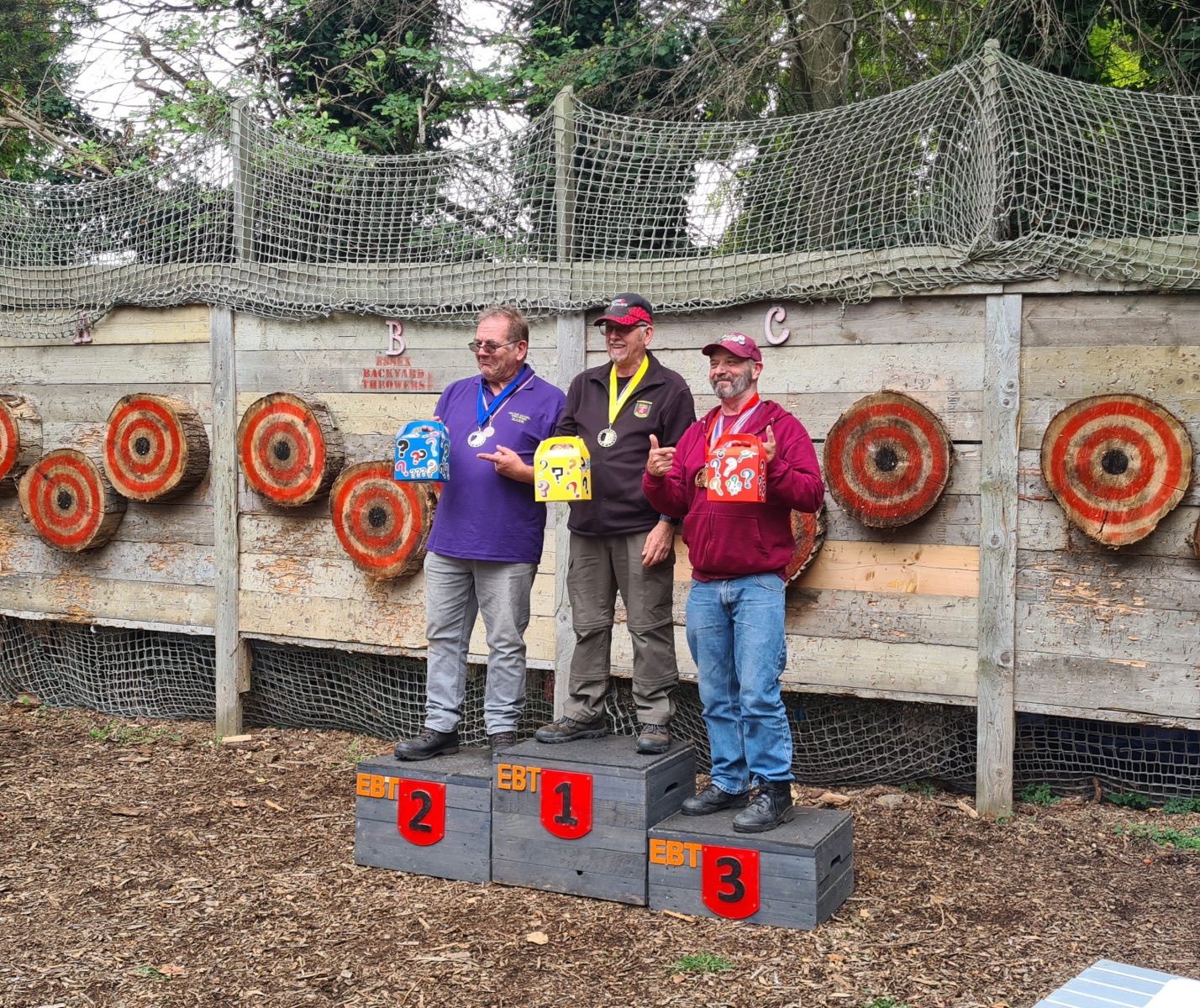 Below are pictures from the Essex Backyard Throwers competition held in late August. 1st Place 3m Knife (new UK record 103) / 1st Place 5m Knife / 2nd Place 7m Knife / 1st Place 4m Axe / 1st Place 5m Axe / 3rd Place 7m Axe / 1st Place Silhouette / 1st Place Snife / 3rd Place Long Distance Knife / 1st Place Overall Knife / 1st Place Overall Axe / 1st Place Overall Knife and Axe Champion