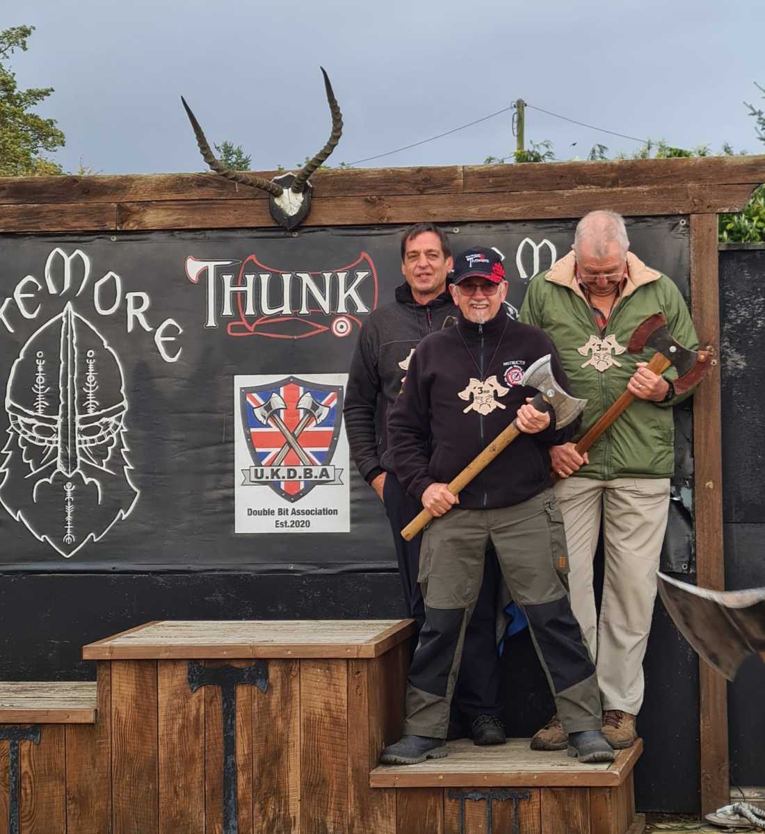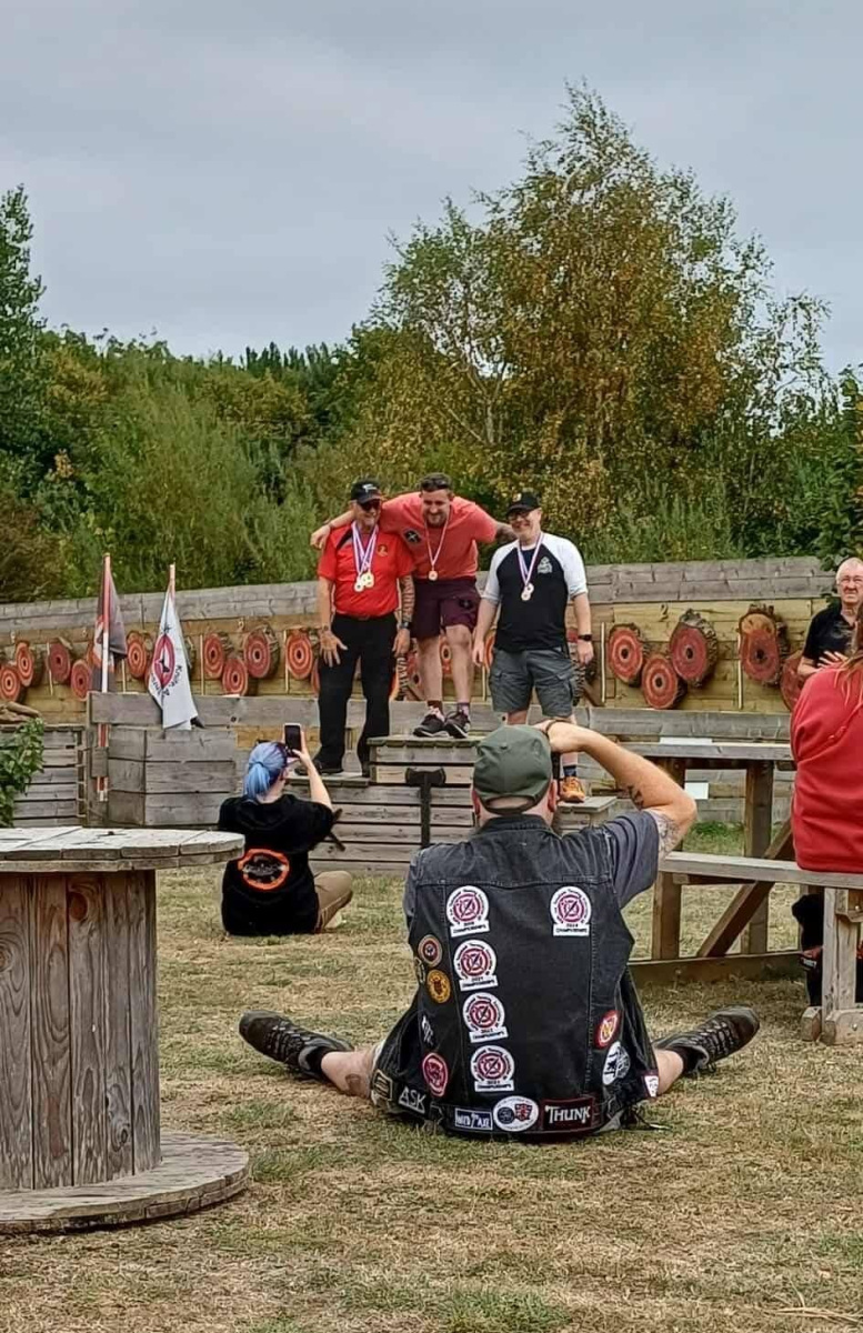 Below pictures are from the UKAT World Championships held in Italy in 2022 by Compagnia del Coltello -throwing club where Alan won the Axe walk back event. World Champion Walkback Axe