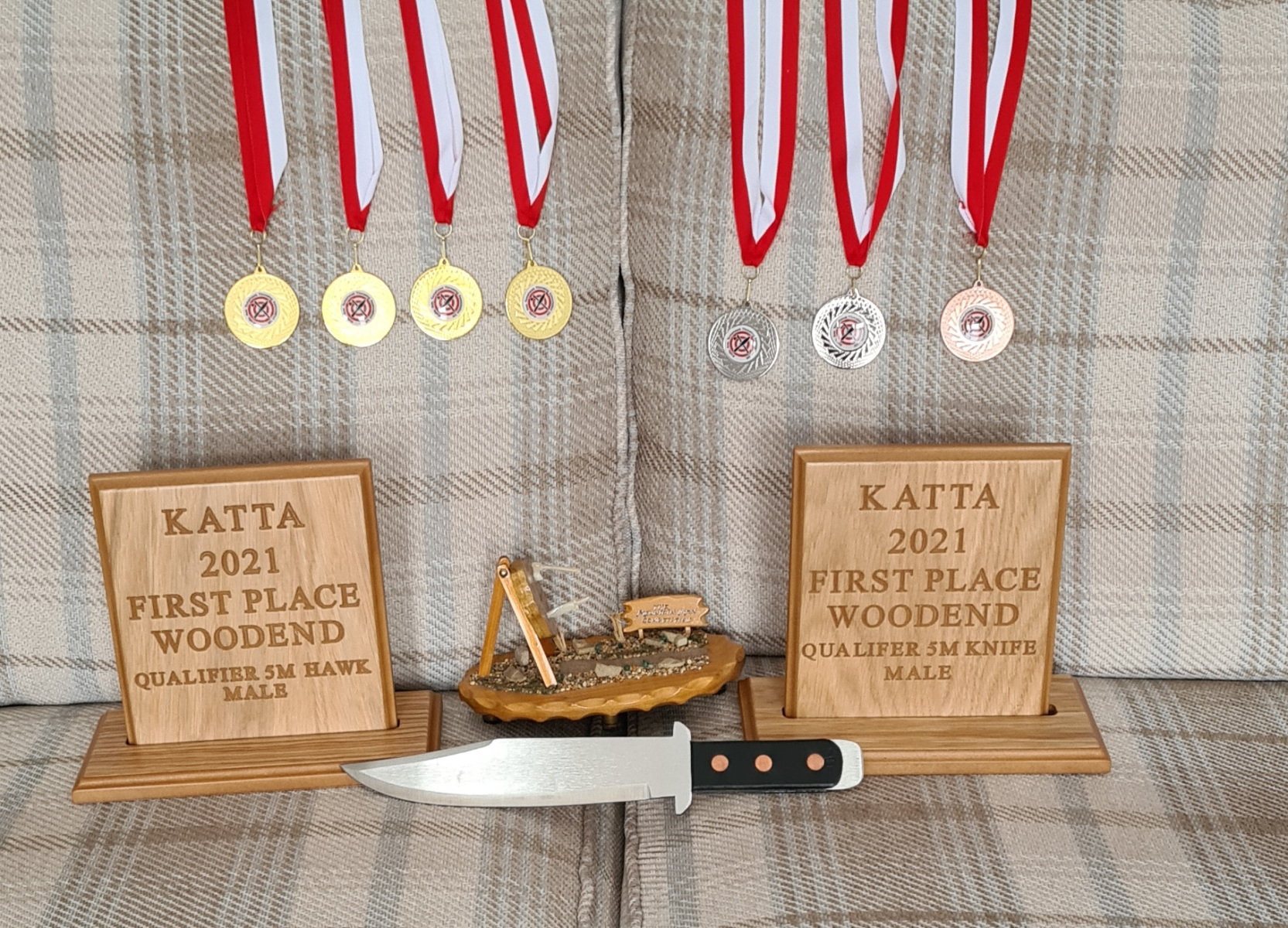 2nd place 3mtr knife / 1st place 5mtr knife / 1st place 7mtr knife / 1st place 4mtr axe / 1st place 5mtr axe / 1st place 7mtr axe / 2nd place snife / 1st place mountain man / 3rd place silhouette / 1st place overall knife / 1st place overall axe / 1st place and Overall Champion 2023